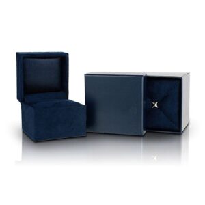 - Chevron-shaped black rhodium-plated collars highlight the center stone with black diamonds.